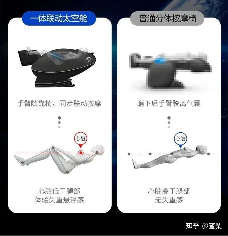 深V太空舱设计非常有意思,当我们躺着心脏的位置低于腿部时就可以感受到太空舱的失重感,而当心脏与腿部平齐(平躺着)时,就没有失重感;此外,它对上班族来说也是相当适用,可以有效缓解鼠标手疲劳情况。这款按摩椅单品爆买1.6亿+,这都是消费者对它质量认可的真凭实据。