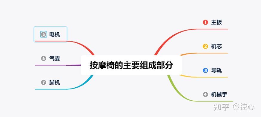 按摩椅的主要组成部分是主板、机芯、导轨、机械手、电机、气囊、脚机等等。