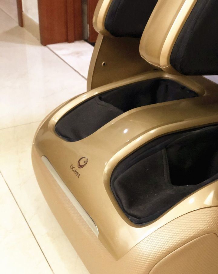 荣泰算是国产按摩椅里知名度比较高的品牌,机场偶尔也有看到,价格区间也是非常广,非常非常广,广到什么地步呢?下到4000多基础按摩椅,上到20W的24K金镶钻款……emmm……其实还挺想跟这款的设计师聊聊设计思路的。