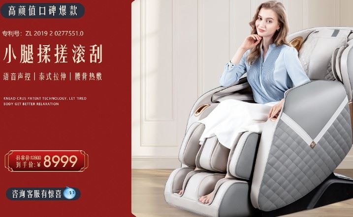 2、iRest/艾力斯特S618:小腿揉搓太空舱,专利小腿揉搓和小腿肚滚刮,价格¥8999.00