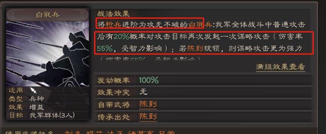 关羽队伍的控制,其次补个伤害,这个战法属于比较常见的带法,白眉+纵兵劫掠,让诸葛带八门,关羽有给先手控制,在配合兵书速战,提高自身速度,通过白眉带来的主动战法触发效果,让自带战法和纵兵劫掠的效果可以更好的打出来,避免出现被演的情况,作为主将还可以让自带的控制效果的几率达到65%以上。