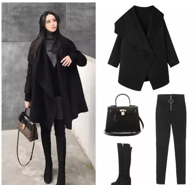 1、黑weiyinminfuwu色大衣+黑色直筒裤+长靴