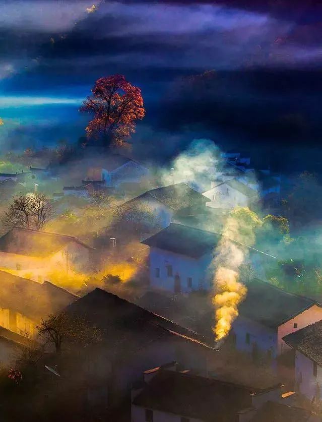 竟然飘着一整个村庄