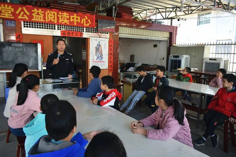 今天,安溪交警的沈金明放弃周末的休息,来到宝莲堂公益阅读中心向学员们讲解交通安全知识。他带来一些宣传册,发放给孩子们。沈民警结合图文并茂的小册子,教育小朋友上下学或者上公路时千秋工坊,一定要遵守交通规则,做到“一看,二慢,三通过”等,学习“行走安全”“骑车安全”“乘车安全”以及交通标识等内容,让学生掌握基本的交通安全知识,并通过提问和回答互动形式,激发兴趣,引导学生自觉遵守交通规则的良好习惯。