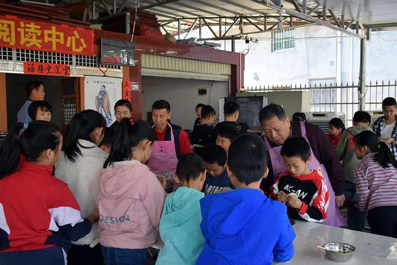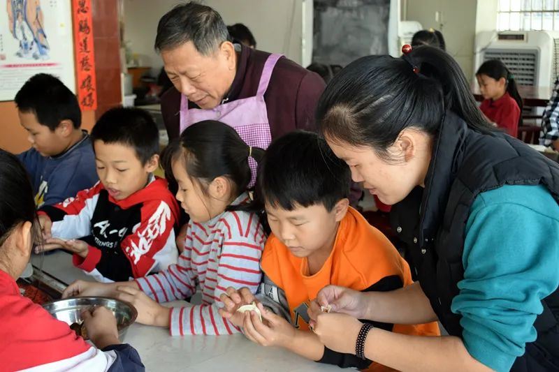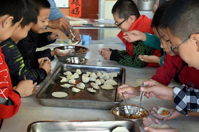 爱心厨师陈振发和部分家长,耐心地教包水饺,小学员们虽然包得不好看,但还是兴趣盎然……