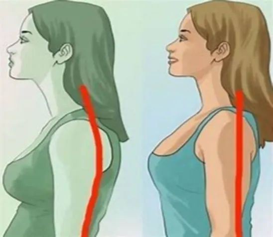 (正面看是圆肩,侧面看是驼背)