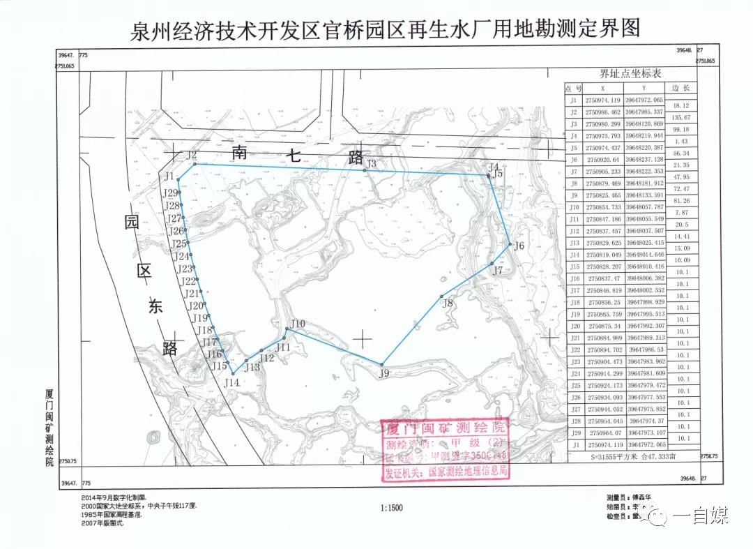 附:泉州经济技术开发区官桥园区再生水厂用地勘测定界图