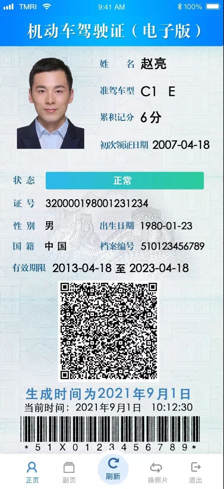 电子驾驶证样证(正页)