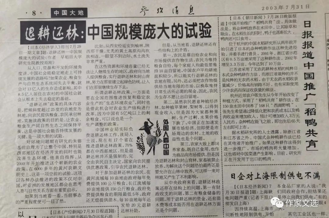 《参考消息》上有独特的消息,对工作有帮助,举最近的一例。《世界文博如何让文物活起来》(20210826)特稿上,不独介绍国外的,还有《参考消息》记者张熠柠写的“新时代故宫文创的新作为”。文章介绍了长期从事宫廷饮食研究的苑洪琪,开发故宫文创食品的情况,饶有兴趣,而在其他大报上未见到相关的文章。我到网上一查,查到有苑女士的《故宫宴》,正是欲读之书,立马订购一本。不几天书寄到了,一看是2021.1刚出版的,最新出版,二是图文并茂,故宫学者一篇篇介绍故宫美食的文章、烹饪大师一幅幅清宫美食的照片,再加上一幅幅故宫古画,美仑美奂。读报又得到了新书讯。领袖说过要让书写在古籍里的文字活起来,丰富全社会的历史文化滋养。凤头白鸭是中国古鸭之一,明代就有记载,清代皇家园林畅春园中“凤头白鸭,游戏成群”??滴趸实鄢破湮睹朗持幸妫浣喟咨岵坏贸?。清代的“荷花双凫图”,画的就是两只乌嘴白凤头鸭。凤头白鸭经过我和我的团队十多年的抢救?;ぃ沼诖游淖?、从图画中“游”了出来,成为国家畜禽遗传资源,进入国家畜禽品种名录,进入市场,游进数家江南著名园林,我真希望凤头白鸭早日重返皇家园林。故宫文创产品的经验,对我们开发利用凤头白鸭的观赏与食用,不也有稗益吗!介绍英国、意大利、日本的文创经验则是他山之石可以攻玉了。报上有我想看的农青筋妹业科技内容我从事的是农业,所以对《参考消息》上的农业报道感兴趣。记忆中是上世纪八十年代《参考消息》上有国际水稻研究所培育成“奇迹稻”,掀起绿色革命的报道,我也曾搞过稻麦育种、投身过杂交水稻的南繁与繁殖推广。就今年的《参考消息》而言,有《袁隆平:让饥荒成为遥远的记忆》(2021525)国内同类文章不可谓不多,但这篇文章的介绍有独特之处,“袁隆平在20世纪70年代初期取得发现后,一直强烈主张与全世界分享他的突破性进展”,这可是袁隆平先生的天下情怀。《农禄和快乐大米》介绍的是泰国女护士辞职种有有机大米的故事。(20210302)农业关乎食物,食物关乎健康?!恫慰枷ⅰ飞辖衲暧小洞竽郧啻撼ぴ诓皇敲巍罚?0210122)、《饮食革命重绘明白餐桌》(20210825)《以植物为基础的美食风靡全球》(20210512)《多吃果蔬,为健康加分》(20210312)《2021果蔬农蔬残留红黑榜》(20210326)人造肉生产可以说是当今食物生产的前沿了。参考消息上介绍囯外的文章有《培植肉:让盖茨和布兰森痴迷的未来食物》(20210721)《以色列培植鸡肉大出风头》(20210707),“生产从培养取自受精鸡蛋的细胞开始,细胞被放在植物性液体中培养,液体的成分包括蛋白质、脂肪、糖、矿物质和维生素等。细胞直接吸收这些饲料后,体积在数小时内倍增”。报上也有介绍国内的进展《中国人造肉市场快速崛起》(20210728)今后畜牧业的发展,真得走科技与可持续发展的道路啊。如果说人造肉惠及大众尚有时日,那么,多吃鱼或许更容易做到?!锻乒阈∮阊车挠摇罚?0210521)、《预防阿尔茨海默病,多吃油性鱼》(20210514)就为读者么哥团介绍了这方面的最新知识。昆虫蛋白生产也是未来农业的新领域,文章有《美法企业打造昆虫蛋白农场》(20210110)所讲的昆虫是“黑战士蝇”,恐怕翻译成“黑水虻”更适合吧。我所在的江苏镇江就有利用黑水虻处理厨余、生产昆虫蛋白的企业。狗是人类的好朋友,《狗狗历史上40个里程碑》(202游侠红牡丹主题曲10421)文章介绍了治疗犬、导盲犬、搜救犬、诊断犬,文章报道得快,给人新知,开人眼界。农业有赖于环境。搞农业的人岂能不关注环境与生态《帝王蝶濒临灭绝》(20210123)数量已骤降至创纪录的低点?!度蛉墒髦置媪倜鹁O铡罚?0210902)告诉你:全球有17510个树种有灭绝的危险,是面临?;牟溉槎铮窭?、两栖动物和爬行动物数量总和的两倍。树木面临的前三大威胁是粮食生产、伐木和畜牧业,气候变化和极端气候,则是新出现的危胁。树木是健康生态系统的支柱,没有他们其他植物昆虫鸟类和哺乳动物就难以生存。人物周刊上常有介绍国外人物的好文。如《疯狂马斯克》(20210112)、《梅琳达.弗伦奇.盖茨的觉醒》(20210720)《从狗仔到大师的胶片人生》(20210817)《替地球发声的斗士们 》(20210427)“斗士”一文介绍了欺负小苍兰14位地球斗士,个个都是传奇人物。以前我曾读过珍.古道尔的传记《黑猩猩在召唤》(科学出版社 1980)、读过旺里加.马塔伊的人物报道。这篇文章介绍了94岁高龄的英国科普与自然学家戴维.阿滕伯勒。国内刚好出版有他的自传(《大卫.爱登堡自传》重庆大学出版社 2020.12)我买了一本来读,有随这位世界自然纪录片之父遍访世界之感。他在书的结尾写道“我之所以用这样的方式度过自己的一生,且不愿停下制作节目的脚步,最根本的原因只是,我不知道这世上还有比凝望自然世界并尝试去理解它,更为深刻的快乐?!?/section>八月最后一天的人物文章是《赤脚的灵魂鲜血淋漓》(20210831),文章介绍了歌唱家塞萨里亚.埃沃拉?!罢馕淮硬换唤跻隆⑴ㄗ毖弈ǖ墓饨排?,用她的质朴笑容和绝世嗓音,让西非岛国佛德角在世界文化地图上有了自己的一席之地。”这不值得歌星又不止于歌星学习吗?几年前去北京出差,我还专门在宣武门西大街57号门前走过,心想新华通讯社就在这里、《参考消息》在这里,真有一种亲切感。生活中很多东西可以没有,却不可以没有《参考消息》。今