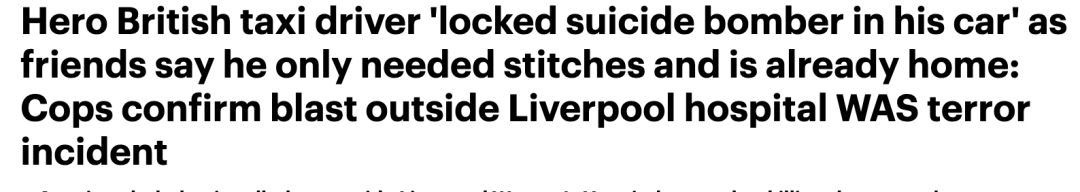 在此之前,英国警方已证实,昨日在利物浦市中心医院门口发生的汽车爆炸案是恐袭。