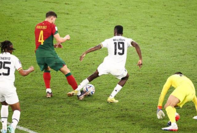 比赛来到第72分钟,加纳的反击正式开始,库杜斯直插禁区通过回传让安德利阿尤获得了射门的机会,阿德利阿尤在禁区前将球射进,比分来到1:1。比赛继续进行,第77分钟,葡萄牙的菲利克斯在接到费尔南德斯的传球之后,直接一脚推射完成破门,葡萄牙将比分重新定格在了2:1取得了领