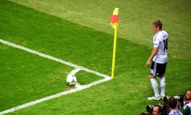 在比赛时如果防守方球员在自己的半场内和进攻方球员进行防守的时候,防守方将球踢出了球场外,进攻方就能拿得到一次角球傲之煞的机会,角球的位置是不能够自己进行决定的,一般来说都是在球门的左边或者右边来发起角球。