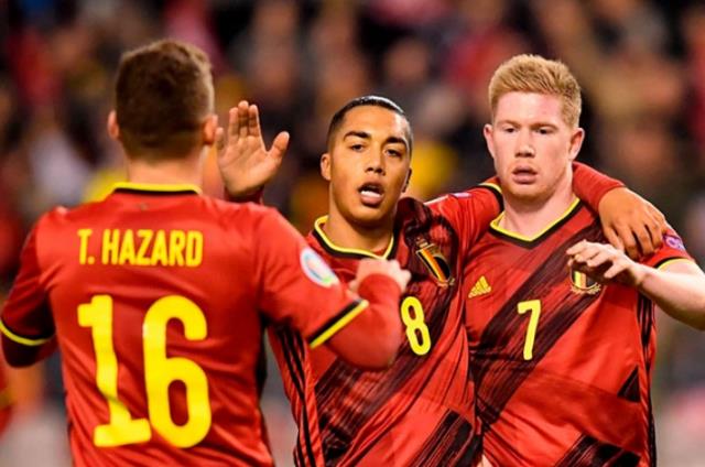比利时首发:门将:1-库尔图瓦。后卫:2-阿尔德韦雷尔德、5-维尔通亨、19-登东克尔。中场:6-维特塞尔、7-德布劳内、15-穆尼耶、21-卡斯塔涅。前锋:11-卡拉斯科、14-默滕斯、17-特罗萨德
