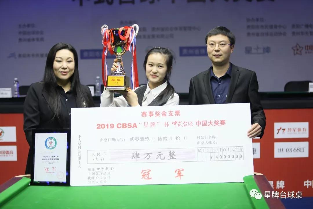 中国台球协会副秘书长唐旭;贵州省社会体育治理中间副主任朱四新;贵阳;,市市平易近健身中间主任肖虹;中国台𧂙ɰ;。599;、球协会中国式台球项目委员会副主任、星牌体育赛事总监王新月及贵州省台球协会秘书长、贵州华光智星体育文化有限公司董事长寇思翔出席弊端 弊端式,并为获得男女子组冠亚军的球员颁奖。