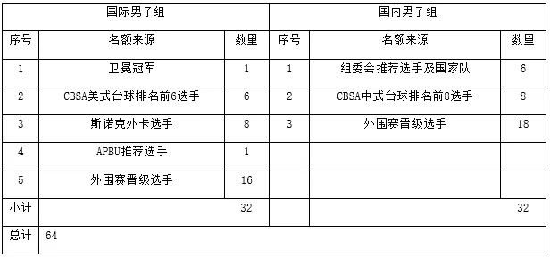 C.外围赛国内组的第一场竞赛抽签,根据2018年度CBSA排名次序设定须眉16名、女子8名为种子选手,剩余选手抽签入位;国际组的第一场竞赛不设种子选手。