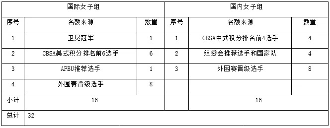 女子组正赛选手名额分派表