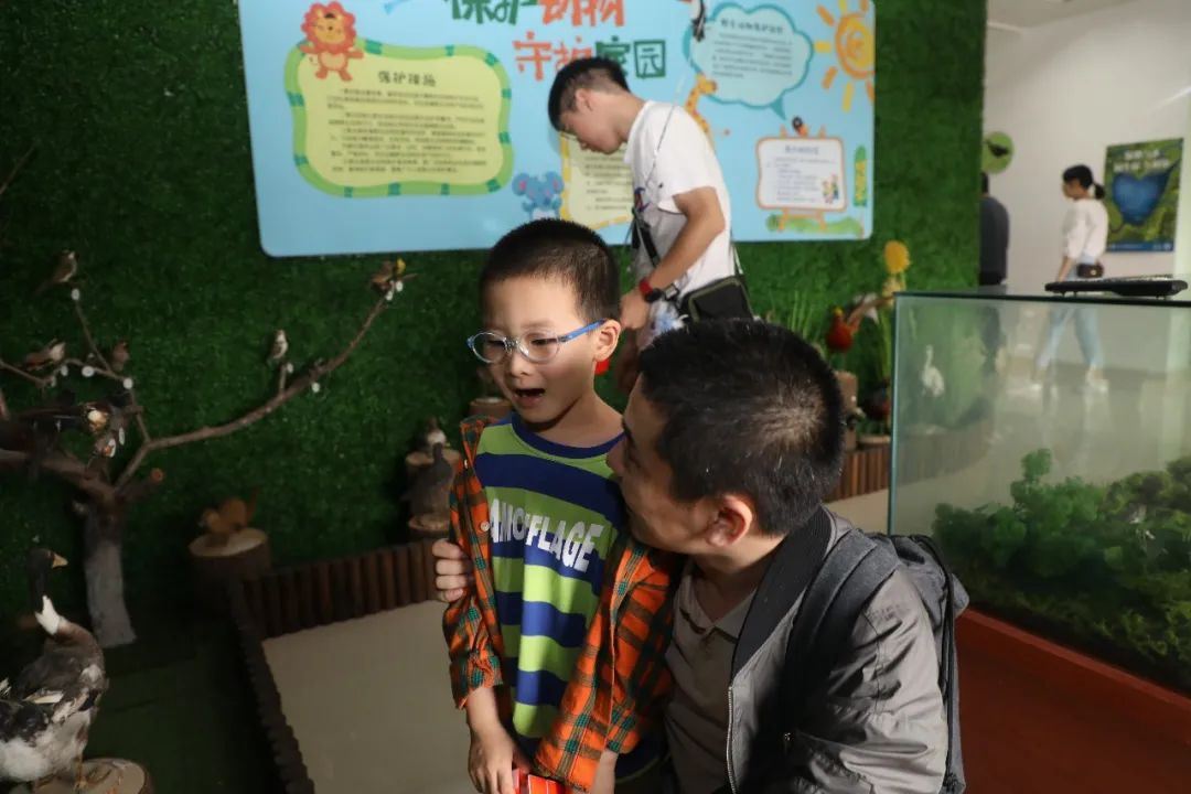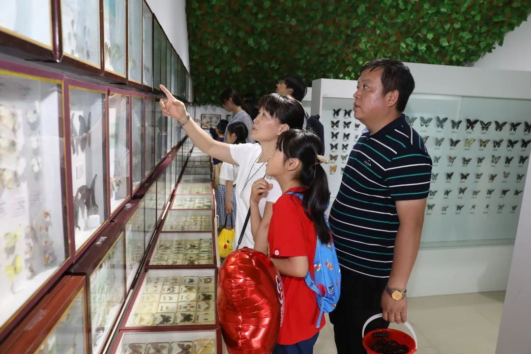 在奉贤区青少年野生动物科普基地,小朋友们参观了狗獾标本、昆虫、蝴蝶等野生动物标本。