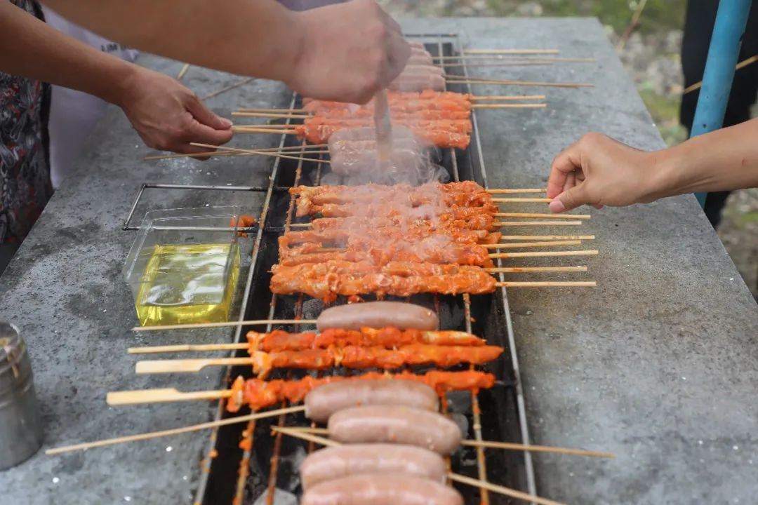 家长们用出自己的十八般厨艺,在烧烤架上对食材进行加工。香肠、牛肉串、骨肉相连等等经过了家长们的双手变成了一道道美食进入了小朋友的口中。随后又品尝自己钓的小龙虾,别有一番风味。