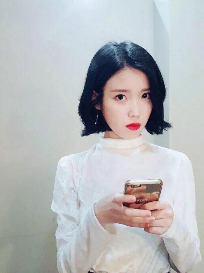 IU的这款齐嘴短发是四六分的,四六分的发型很适合圆脸、方脸、大脸女生。如果你的鼻子很挺拔的话,也可以试试中分呢。