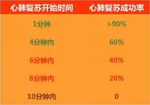 发病后呼吸心跳骤停,10秒脑氧耗尽,30秒脑电消失,4分钟脑葡萄糖耗尽,5分钟脑ATP耗尽,最长6分钟脑神经元不可逆死亡,想活命必须在4~5分内做有效心肺复苏/除颤……