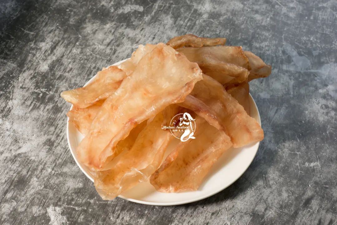 Lingfish花胶是来自一种深海鱼Ling Fish,又叫鳕鳘鱼。多产自新西兰和澳洲水域---世界上水源最纯净的地方。