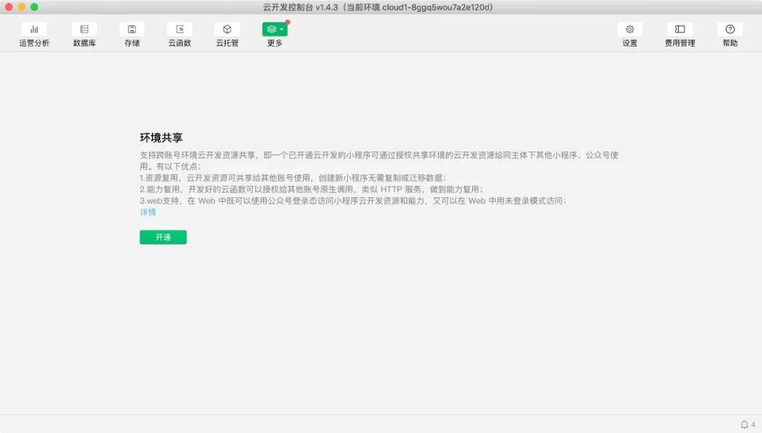3、点击上我的古怪高中2面的「云开发」按钮进入云开发控制台