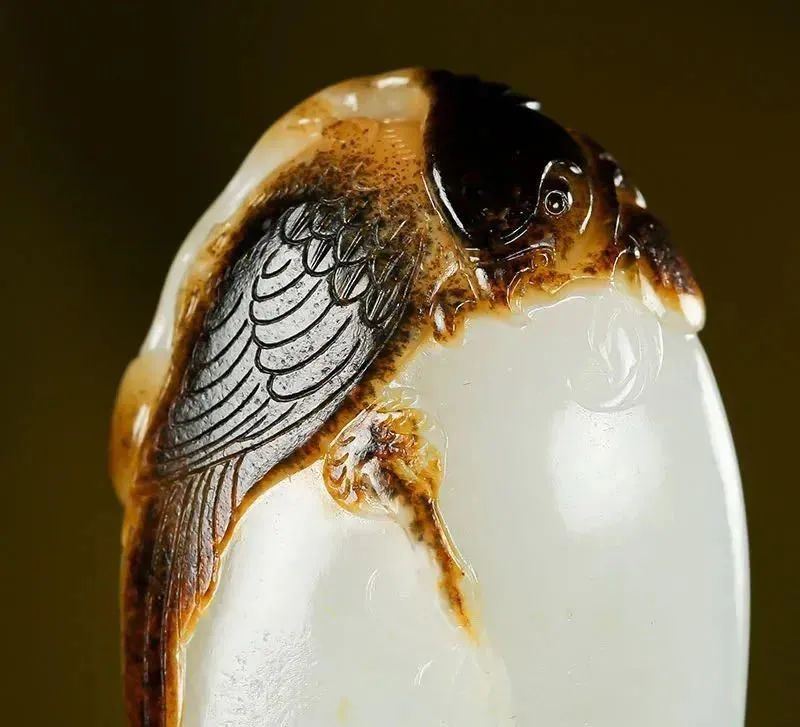 见过很多玉雕作品,它的玉质都能挑出一点毛病,比如细度不太够,或者白度不太够等等,但好皮色依然让它成为收藏级的一种!