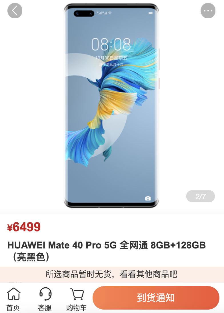 今天去几个官方电商渠道看了一下,一些大家比较关注的型号,比如 Mate40、P40 等,不是没货就是预约抢购。