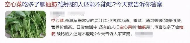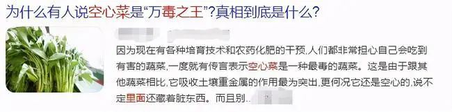 最近,网上有关空心菜的谣言让人触目惊心。有人说空心菜吸收了土壤中的重金属,是“万毒之王”,吃多了会抽筋。