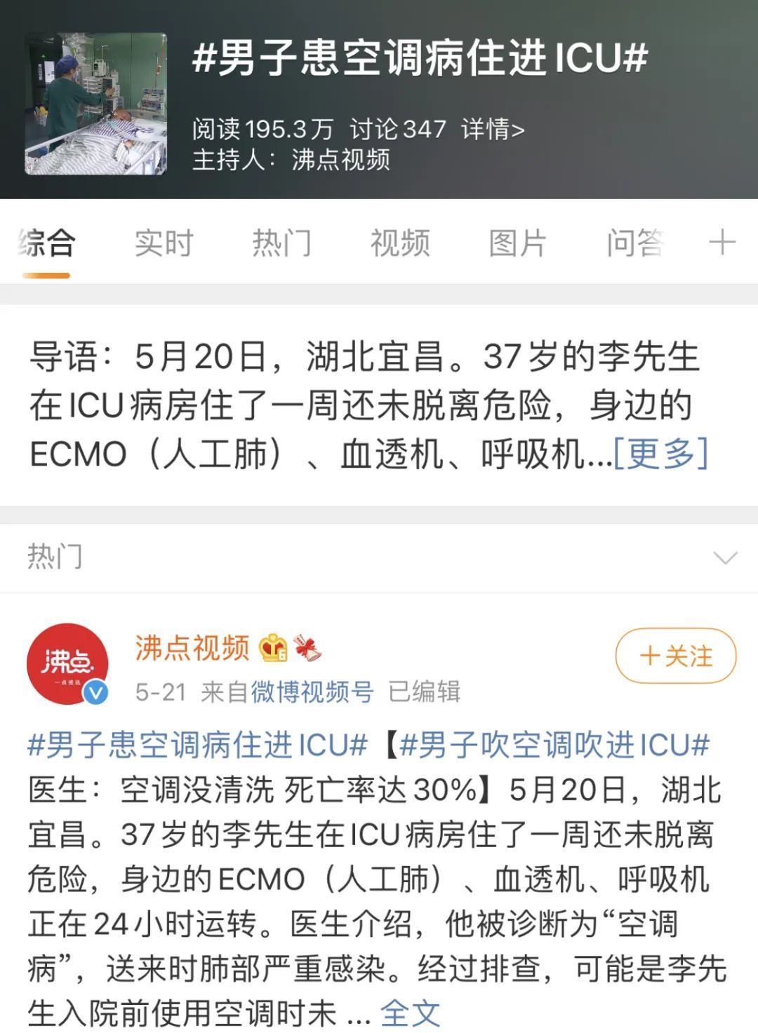 男子吹空调吹进ICU?