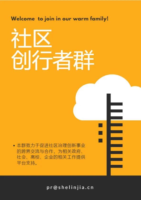 感谢大家一直以来关注社邻家,让我们了解到有那么多同道在社创路上一起披荆斩棘,为了让大家能够互相了解、相互助力,社邻家特此创建社区创行者交流群,让我们一起成为社创路上的同行者。