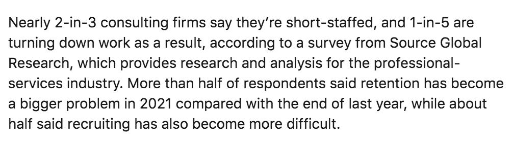 但话又说回来了,为啥美国咨询行业会出现“缺人又招不到人”这种情况呢?
