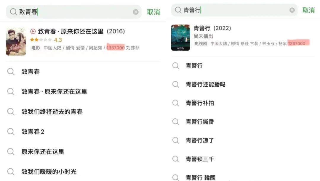 此外,吴亦凡还是参演京v牌照过不少影视作品的,搜索相关剧集,吴亦凡的名字也已经变成了编号"1337000"。另外由1337000号前演员主演的电视剧《青簪行》还尚未播出。