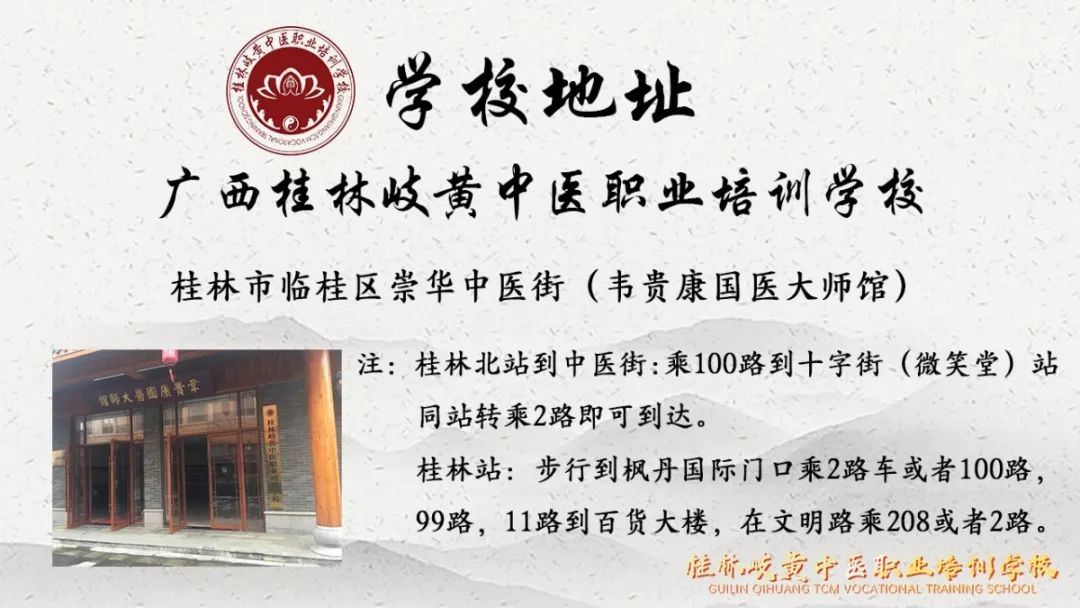 桂林岐黄中医职业培训学校是由民政局、人社局批准、领导办学集教学、科研、培训、医疗为一体的综合性学校,先后受国家卫生计生委能力建设和继续教育中心支持。