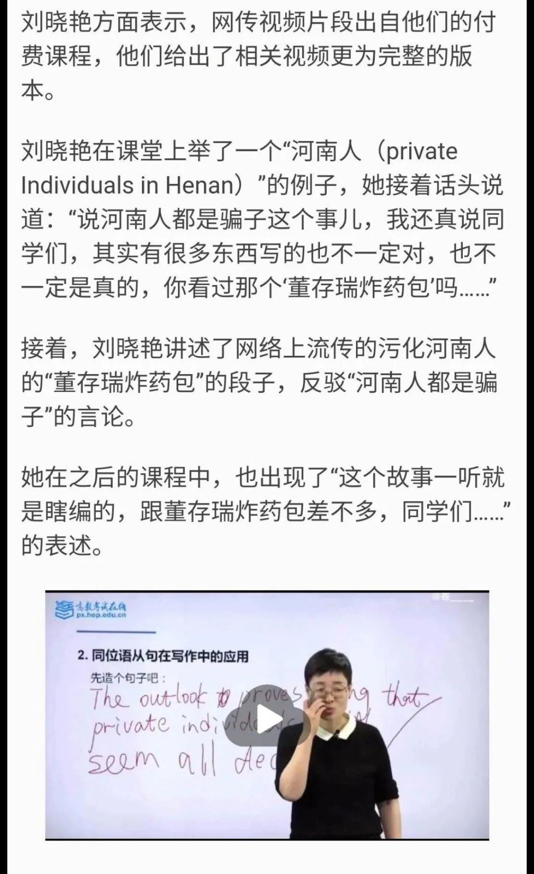似乎是和此前课堂一段视频关于刘翔的评价有关。