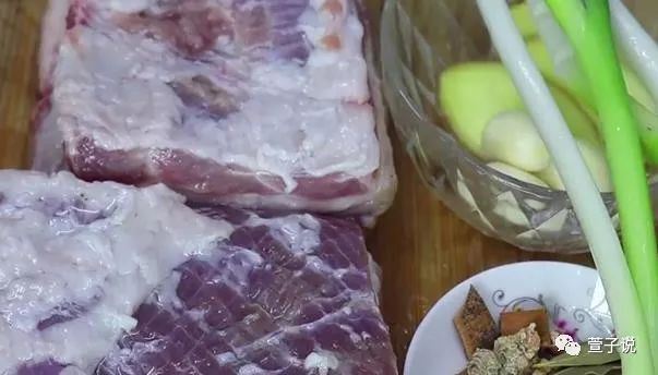 要制作五花肉,首先还是需要一些制作食材的,这些我们都是需要提前准备好的,五花肉来上两块儿,葱姜蒜,山奈,香叶,桂皮,大料,辅料也不需要准备很多,准备这些就OK啦。