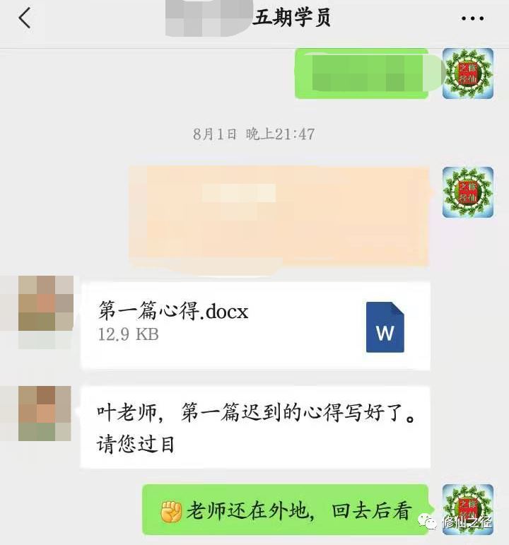 这位学员报名时没有告诉叶老师有人推荐过自己看老师的公众号,而是在课堂上讲到某事时叶老师提到自己的网友中有不少道长是很优秀的时候,该学员说自己就是一位道长推荐后才知道了叶老师的公众号,了解后认为叶老师的确有真货,不是骗子之类的,于是决定攒钱报名。故而叶老师给对方的相关优惠是在学习结束之后。)