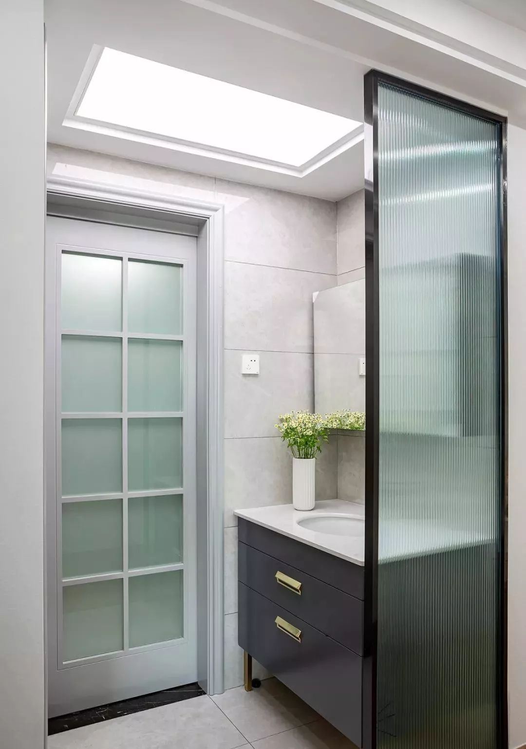 房利通卫生间干区外移,并采用长虹玻璃与过道隔开,不影响过道的通透感,而且质感又美观。铭诚装饰