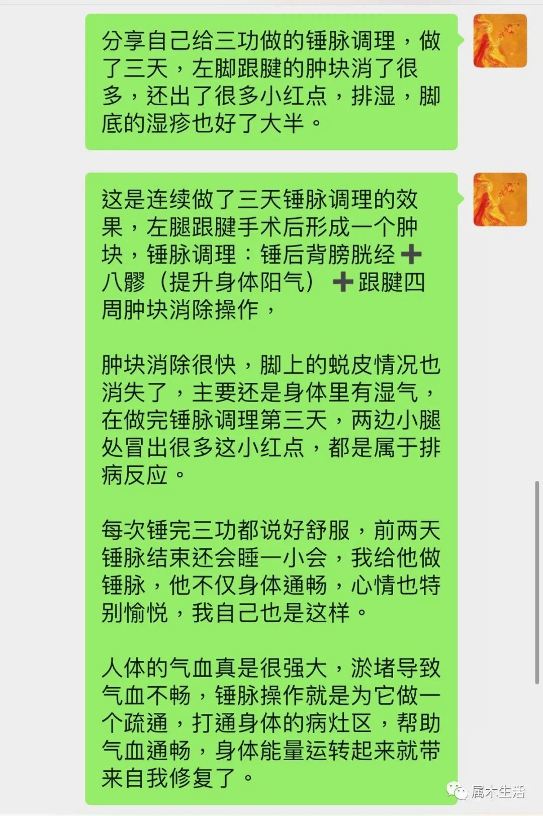 第三天锤脉调理,跟腱术后的肿块已经消失了大半,身体还发出很多小红点