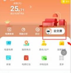 1.进入网上国网手机APP,点击右侧“去交费”按钮。