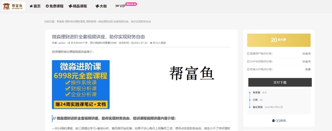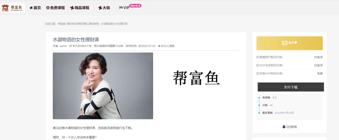 想加入知识付费吗?加盟帮富鱼网,即可拥有属于你的网站,所有课程免费提供。