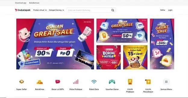 印尼第三大电商平台(从18年的印尼电商第二名下降到19年Q2的第三名,并持续至今)。Bukalapak从C2C业务起家,现在亦开始提供B2路定级C服务允许品牌方与消费者之间相互交易。印尼媒体和科技巨头Emtek Group是其最大股东,持股49.21%。