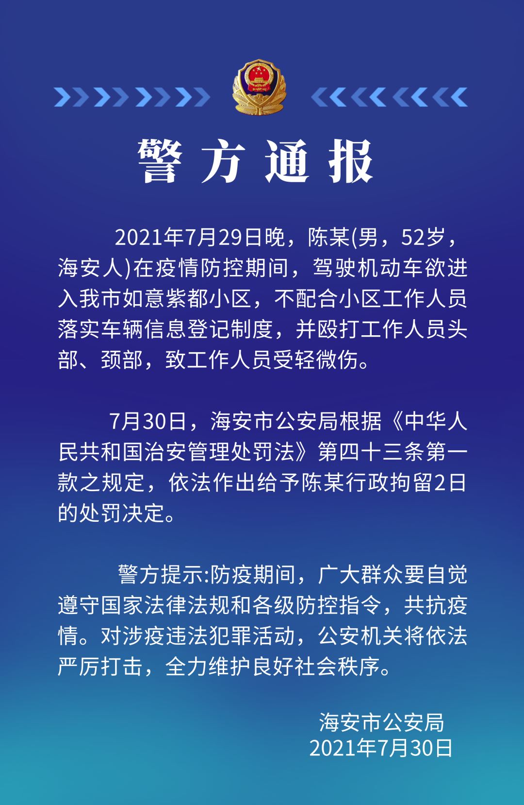 j近日,通州区公安局依法对两名逃避、不配合防疫检查的人员进行了处罚。