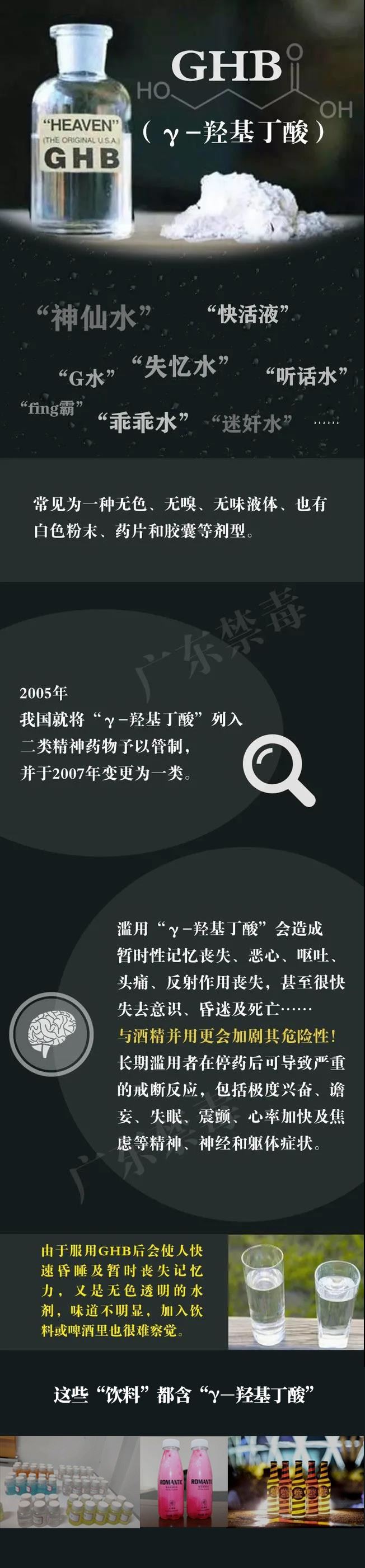 近几年,在个别年轻人群体中流行的“迷奸水”、“失忆水”、“听话水”等软性毒品,都是以新型毒品为主原料。这些新型毒品的一大特点,是区别于传统的“鼻吸”、“注射”等方式,可以混合在饮料、香烟中吸食,摄入方式更具欺骗性,也更难防范。一些贩毒团伙为了逃避警方打击,将这类新型毒品伪装成潮品饮料,在娱乐休闲场所进行贩卖,由于这类毒品服食后的表现形式与醉酒类似,有很强的迷惑性,所以也被称为“俱乐部毒品”。情爱阁因此,很多居心叵测的人会利用新型毒品隐蔽性强的特点,神不知鬼不觉地诱骗目标对象服用“毒”饮料,并趁机对受害者实施性侵。γ-羟基丁酸是“迷奸水”的主要成分,对中枢神经系统有强烈的抑制作用,因无色无味并会导致暂时性记忆丧失、恶心、呕吐等症状,而被犯罪分子用作麻醉药品或迷奸药物。近年来,γ-羟基丁酸常1314qu被混入饮料中进行使用,使用者甚至不知道自己在吸毒,需警惕形似饮料、零食的伪装毒品。