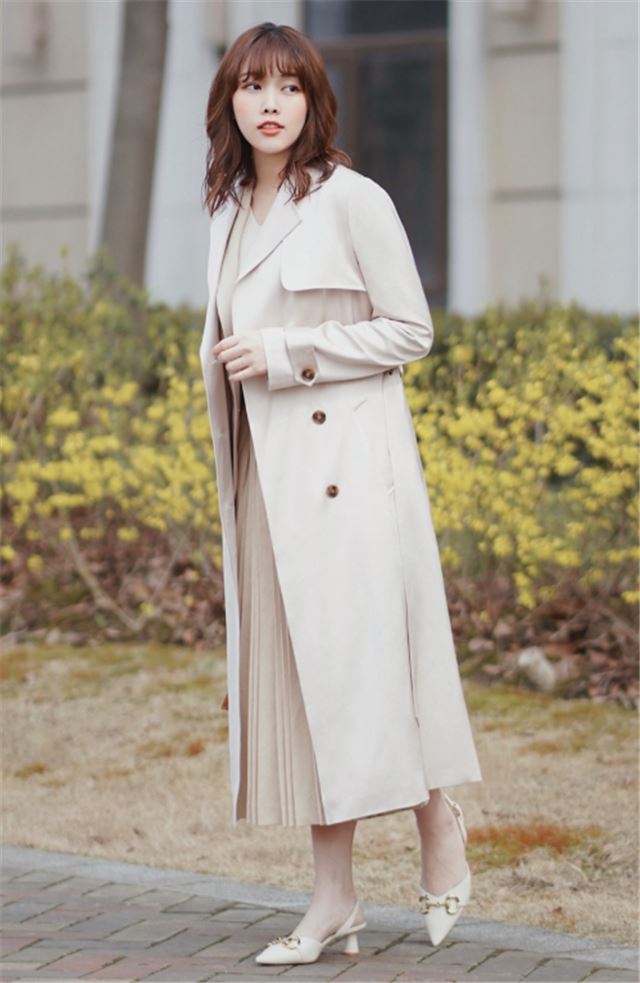 穿风衣还要注重颜色,我们平时搭配的风衣大多数都是下面这种卡其色风衣,而且卡其色也是一种很低调且高级的色彩,日常穿完全没问题,而在搭配的时候,我们尽量可以尝试一些具有亮点的内搭,我们可以选择当下的流行色来和卡其色的风衣形成对比,这种对比色会让整个造型变得更有层次感,避免单调。