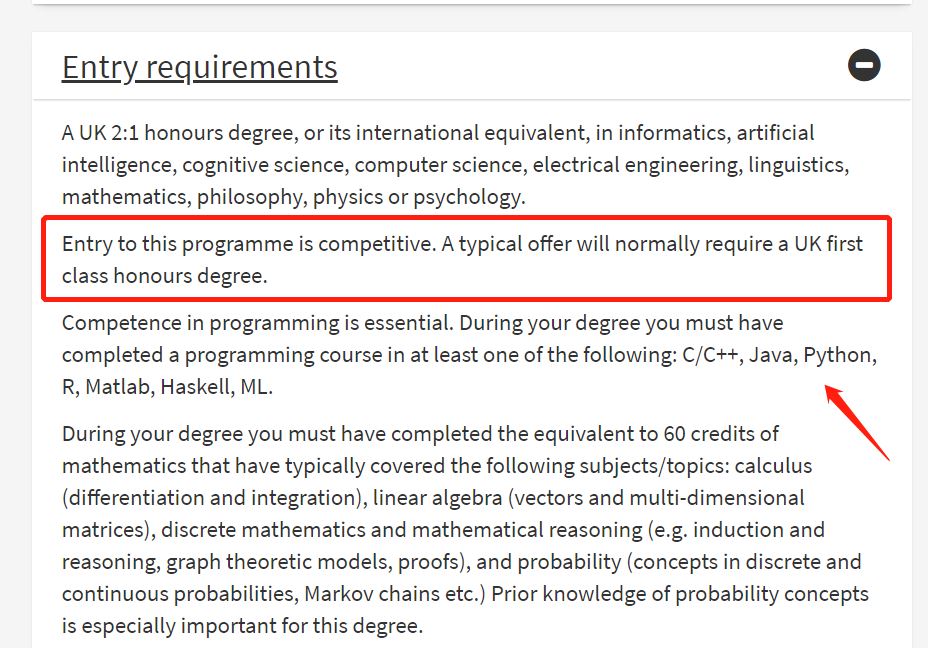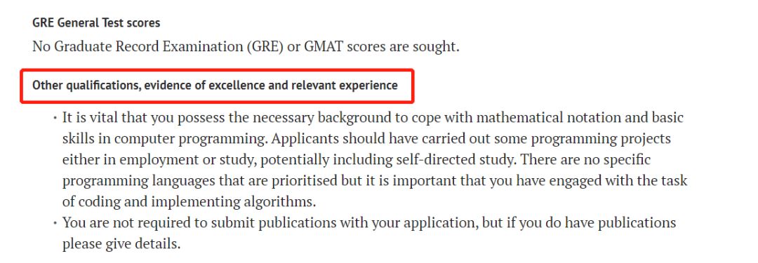 同样是Advanced Computer Science, 剑桥大学项目则是典型的研究型硕士,为有读博士打算的申请者准备,除了要求计算机相关背景和一等学位的GPA,剑桥大学也强调了申请者应在申请材料中展现扎实和丰富的编程经历。