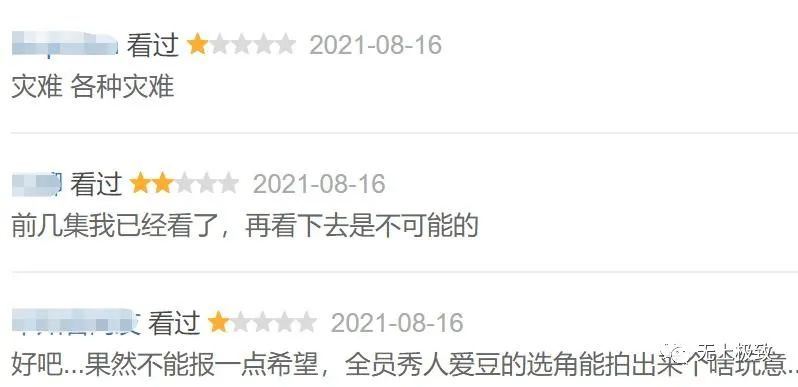 热度全网第三的它,这豆瓣上却收成了一片差评,百分之九十多的观众都给了一颗星的评估。