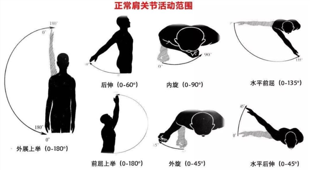 最后一步,最重要的肩关节主动活动和被动活动度的检查。肩关节是人体中活动度最大的关节,当出现肩周炎时活动度会严重受限,可通过对应肩关节正常活动来检查(图 3)。