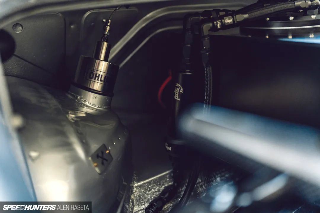 内部有Wiseco锻造活塞、Pauter锻造杆和平衡曲轴,而引擎盖下的辅助升级则包括改进的OEM进气歧管、定制的多喉直喷、Nuke Performance燃油轨和790cc喷油器、定制油箱和DO88铝制赛车散热器,这一切也都精美地呈现在机舱内。