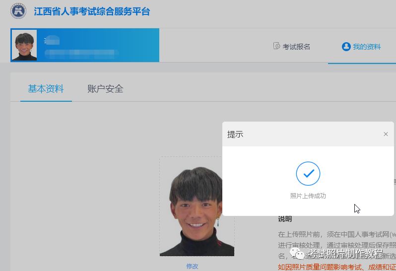 第四步:上传近期正面照片,注意要清晰的免成功一试灵冠照片